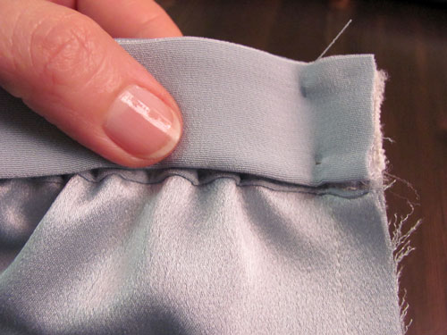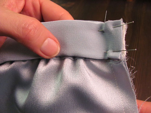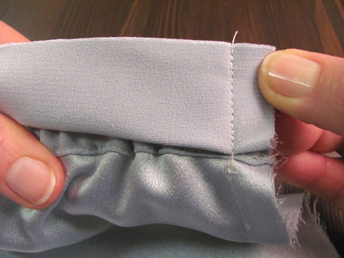 Below please find the steps you need to follow in order to join the front waistband to the back elastic casing.