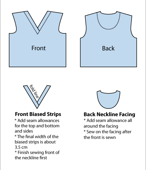 Would like a diagram of how to sew a facing on a v-neck scrub top